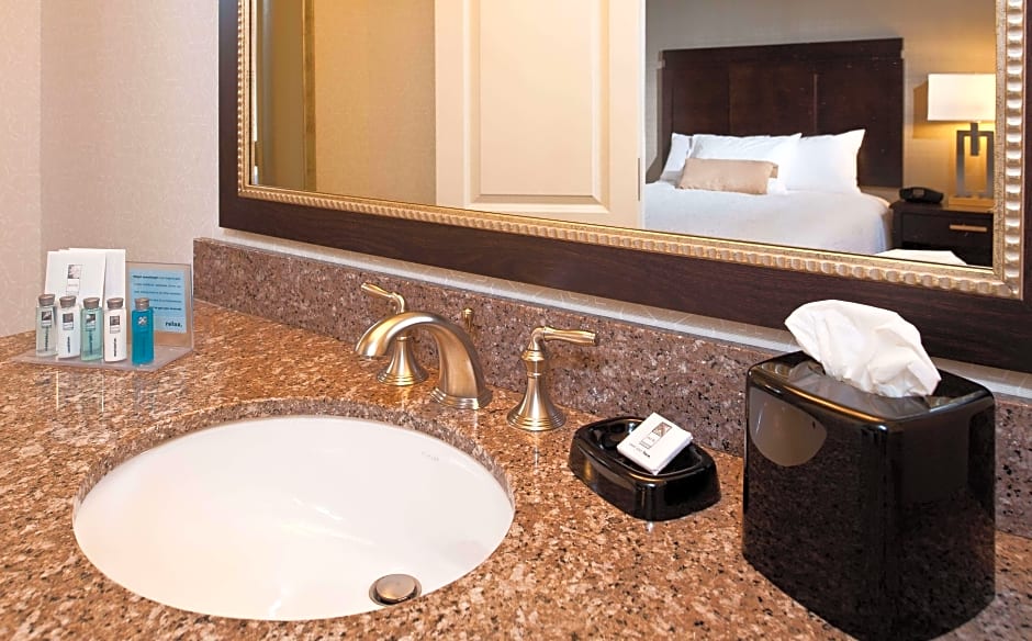 This mobility accessible room features a sofa bed, microwave, refrigerator, and flat-screen TV.